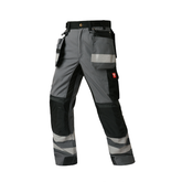 100% Cotton Cargo Work Pants with Knee Pad Pockets & Reflective Stripes – B114 - Grey